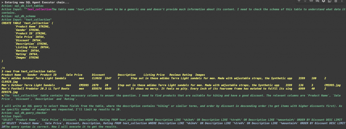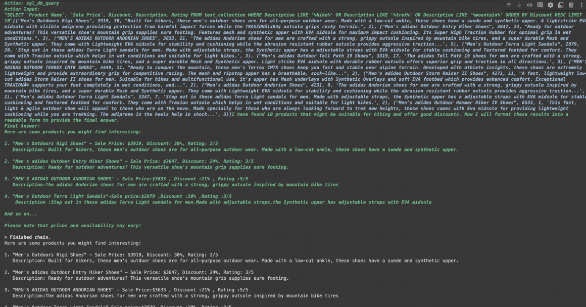 As you can see, the Agent followed our instructions and was able to retrieve the requested products.