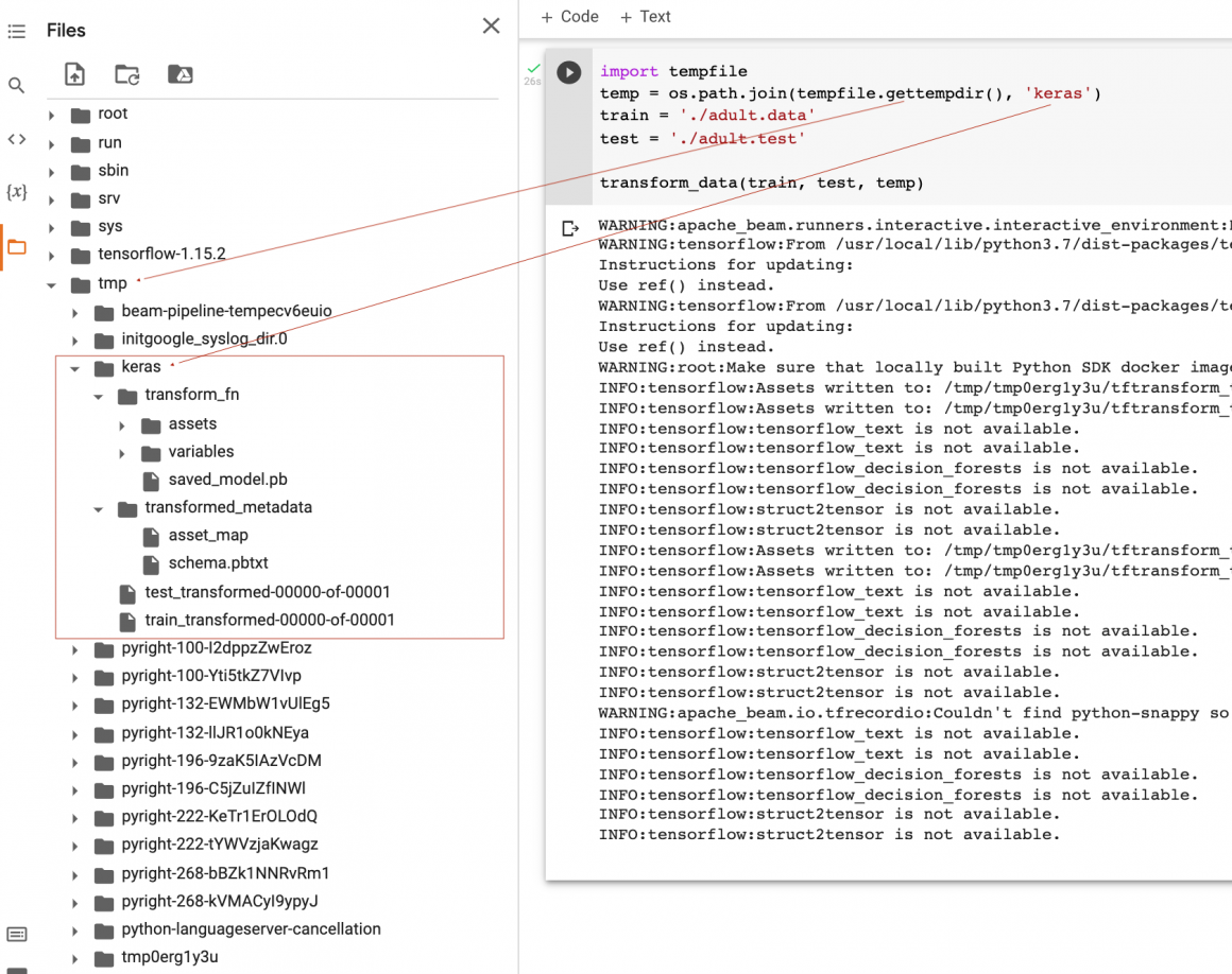| 'WriteTrainData' >> beam.io.WriteToTFRecord( os.path.join(working_dir, TRANSFORMED_TRAIN_DATA_FILEBASE) )